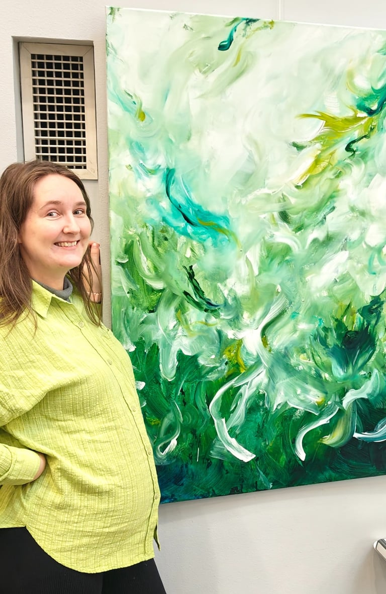 Saara Tani is an abstract expressionist energy painter from Helsinki, Finland. As a sensitive and deeply feeling soul, she uses her brush as a magic wand to express herself in bold colours, translating energy and emotions into mesmerizing artworks.